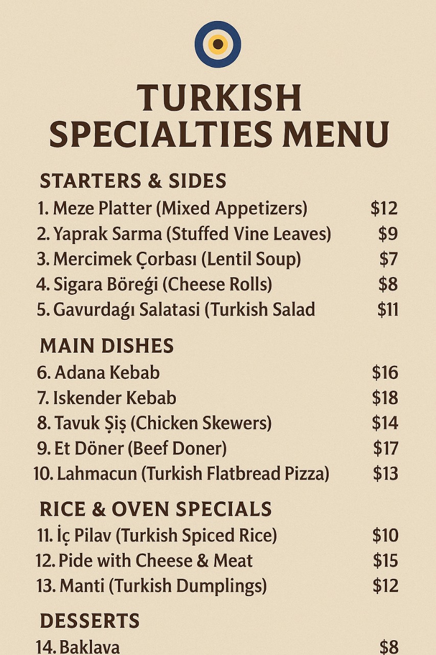 - Lahmacun (Turkish Flatbread Pizza) — $13