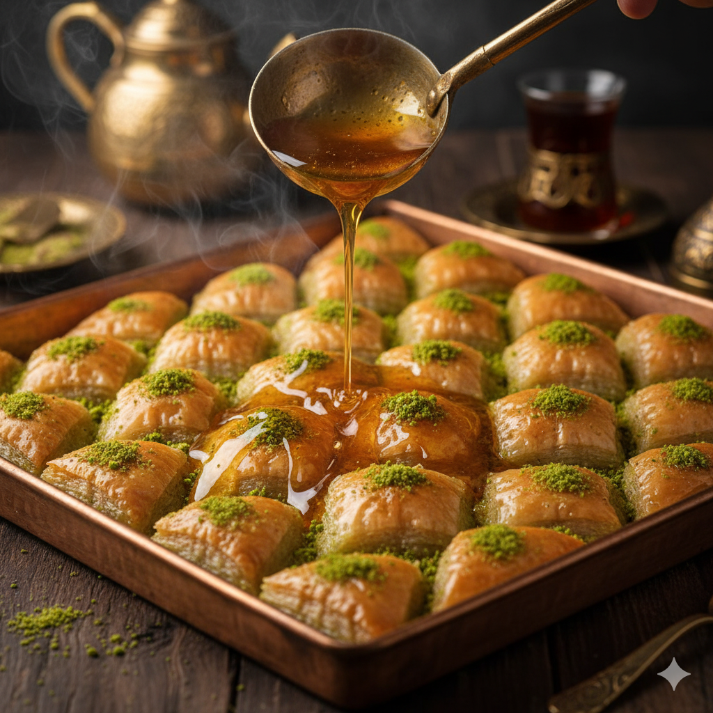 Instead of heavy honey, Turkish baklava is usually sweetened with a light sugar syrup made with sugar, water, and lemon juice. This syrup is poured over the baked pastry so that it soaks in slowly, keeping the layers crispy while giving just the right amount of sweetness. The secret is balance—good baklava should never feel overly sticky or soggy.
