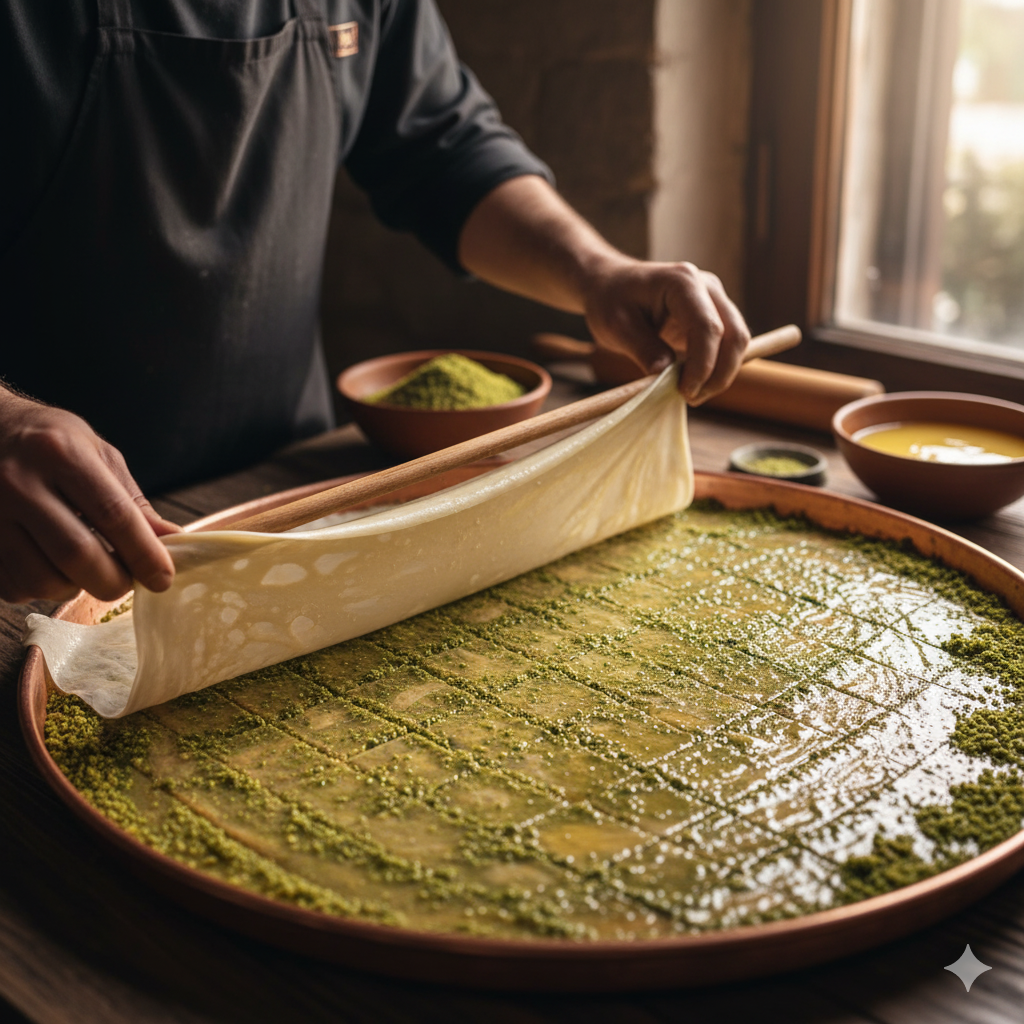 One of the biggest secrets behind Turkish baklava is the thinness of the dough. Skilled chefs roll phyllo sheets so thin that they are almost transparent. Traditional baklava can have 30 to 40 layers of dough, giving it a crisp yet delicate texture. This requires patience, precision, and years of practice, which is why handmade baklava tastes so much better than mass-produced versions.